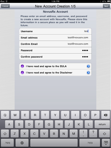 When you have entered your user name and password select New User and Rx-Writer will create a new account for you. Fill out the form with your email address and password.