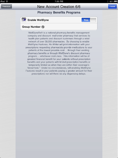 After you are satisfied with your signature, press save in the upper right portion of your screen. You will then be back to Account Creation to complete the process. If you ever need to modify your signature or any any account information, you may do so in Rx-Writer Preferences.