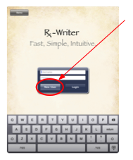 At the login screen you are going to create a new account by pressing the New User button. Rx-Writer will launch into the First Time User Wizard that will walk you through new account creation in 6 brief steps.