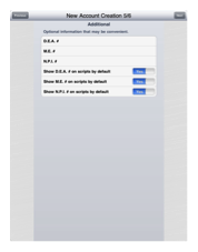 Additional Information: Step five allows you to add your DEA#, M.E.#, N.P.I.#, and set display defaults for each. This may be edited later under preferences from within Rx-Writer. When complete, touch the next button in the upper right corner. This will take you to the final section of setup.
