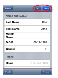 Once you have completed entering the patient's information, press either "Save" to navigate to the new patient's MedList (Medications List) or "Pt+" to immediately add another patient.
