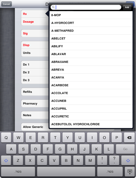 Rx-Writer is an electronic alternative to the traditional prescription pad designed specifically for the iPad and iPhone platforms to integrate seamlessly into the existing workflow of your practice. Rx-Writer is available as a FREE download allowing up to 250 patients, includes 30 complimentary fax pages for use within 60 days, and unlimited free printing to an iOS compatible printer. Unlimited patients and regular FDA database updates are available to subscribers.