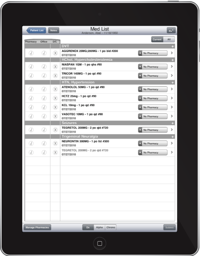 Rx-Writer is an electronic alternative to the traditional prescription pad designed specifically for the iPad and iPhone platforms to integrate seamlessly into the existing workflow of your practice. Rx-Writer is available as a FREE download allowing up to 250 patients, includes 30 complimentary fax pages for use within 60 days, and unlimited free printing to an iOS compatible printer. Unlimited patients and regular FDA database updates are available to subscribers.