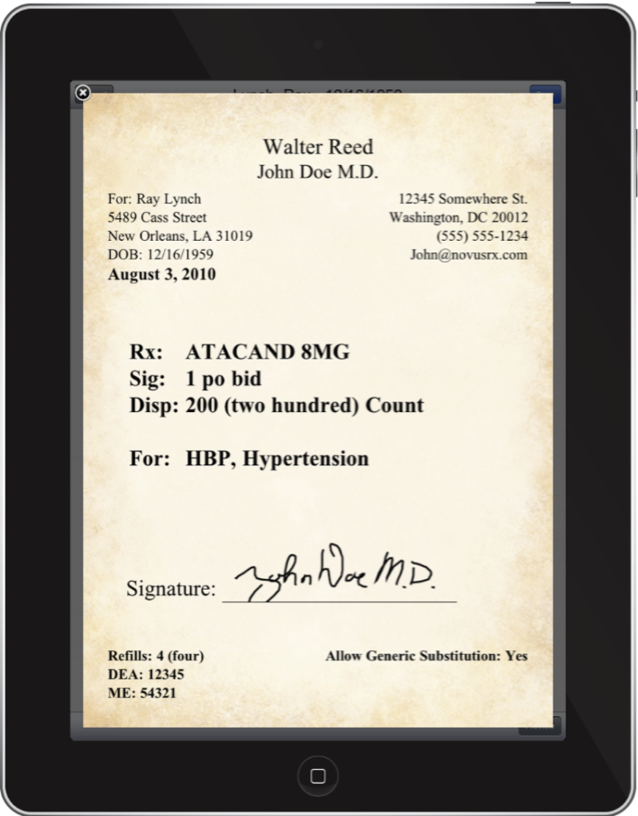Prescription management and the writing of prescriptions has not changed much in the last 800 years. Today, the most common form is still paper based. Physicians either write their prescriptions manually or they review and sign them after their staff attends to the task. It takes far too much time away from seeing patients. Worse yet, some physicians are forced to use an eprescribing solution that forces them to stop interacting with the patient and type archaic, non essential information into a computer system that actually takes more time than writing an Rx by hand. This economically harmful practice provides little or no value to the physician or patient and the quality of care suffers. The NovusRx prescription management solution, Rx-Writer, was created to model these practices into a way the software should operate by drawing from this experience and standard clinical workflow practices used by physicians. This way the physician is not learning a new software system, and it is intuitively connected with how the physician and clinician were trained. To accomplish this we needed new technology, new platforms, a new user interface, and a new attitude. An attitude that reflected the idea of software that is so intuitive you wouldn’t need a manual, training, or an IT staff to manage it. It would be simple and elegant, with benefits so apparent that its value would be unquestionable. Rx-Writer is the result of this experience and research and has enabled us to offer what we believe is the strongest prescription management solution on the market with the best price and performance. Period.